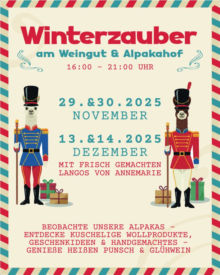 Nehmen Sie sich eine Auszeit und genießen Sie unsere wunderschöne Region mit unseren tollen Alpakas bei einer gemütlichen Wanderung oder Weinverkostung. Buchen Sie gleich online.