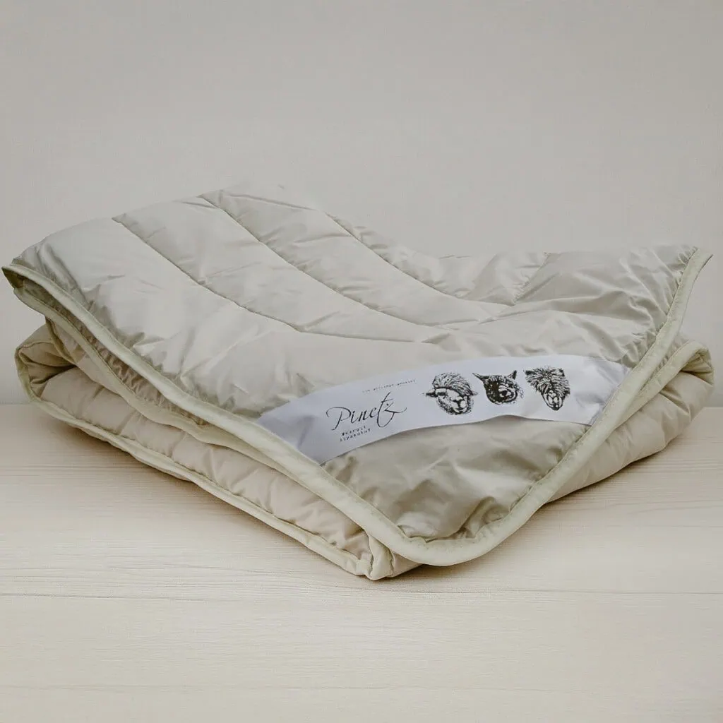 Unsere Alpakasteppdecken sind mit reinem Alpakavlies von unseren Tieren gefüllt und werden in der Steiermark hergestellt. Die Wolle wird ohne Zusatz von chemischen Mitteln gewaschen und händisch aufbereitet, getrocknet und danach mit 100% biologischer, chemiefreier Baumwolle umhüllt.